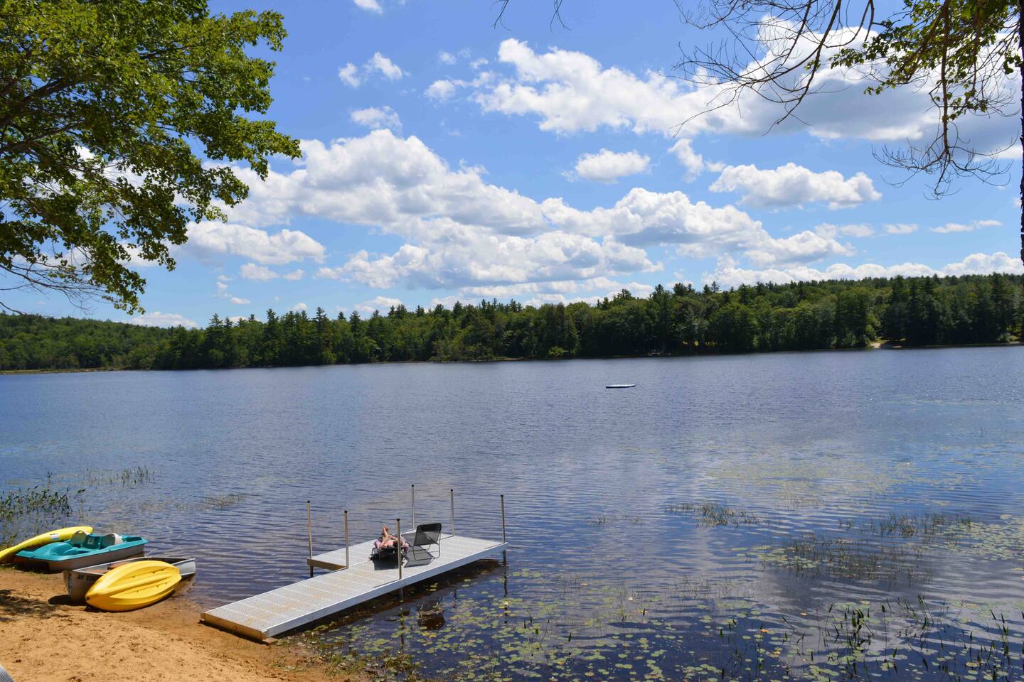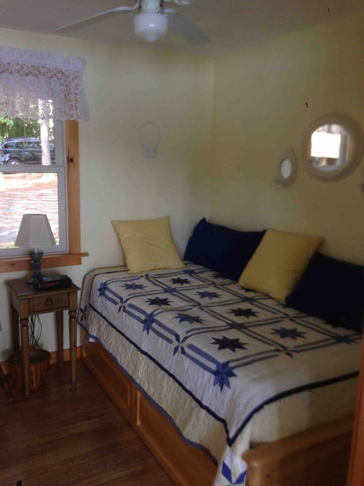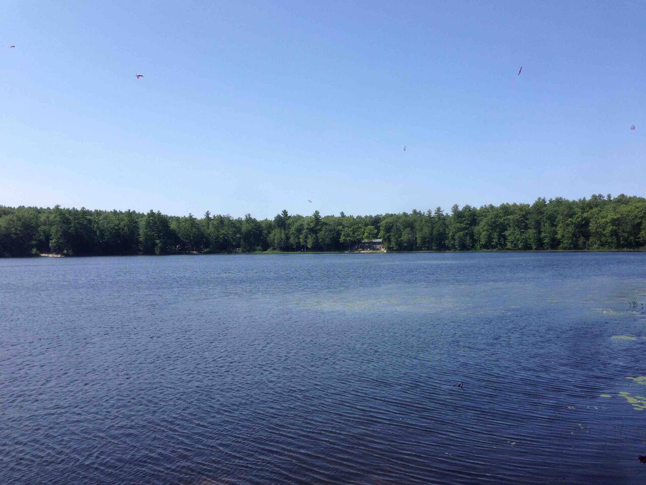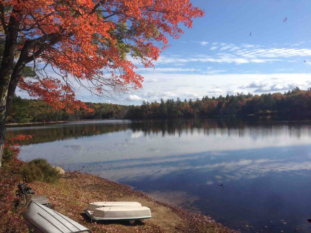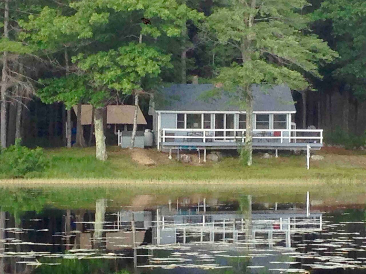 It’s all about the heavily wooded lakeside setting and the great outdoor space. Incredibly peaceful and restful, almost zen-like. The cottage and rooms are compact but comfortable. Please remember this is a rural woodsy lakeside retreat not a W Hotel!! The main house sleeps up to 6 and has one bathroom. Please note there is no laundry facility so please bring sheets and towels. Overflow beds are in a rustic bunkhouse sleeping 4 people in basic bunk beds. Has light, power outlet, windows, a fan and a space heater should you need them but no AC (it rarely gets real hot and often there is a Nice breeze from across the lake). Perfect for the kids! The lake is small but very pretty. Water is relatively shallow and warm. Lake floor is a mixture of sand and silt. We swim all the time in the sandy area in front of the small private beach. For those who like to fish I’m told it’s amazing because of the warm shallow water. You’ll see neighbors out fishing every day. No power boats are allowed.