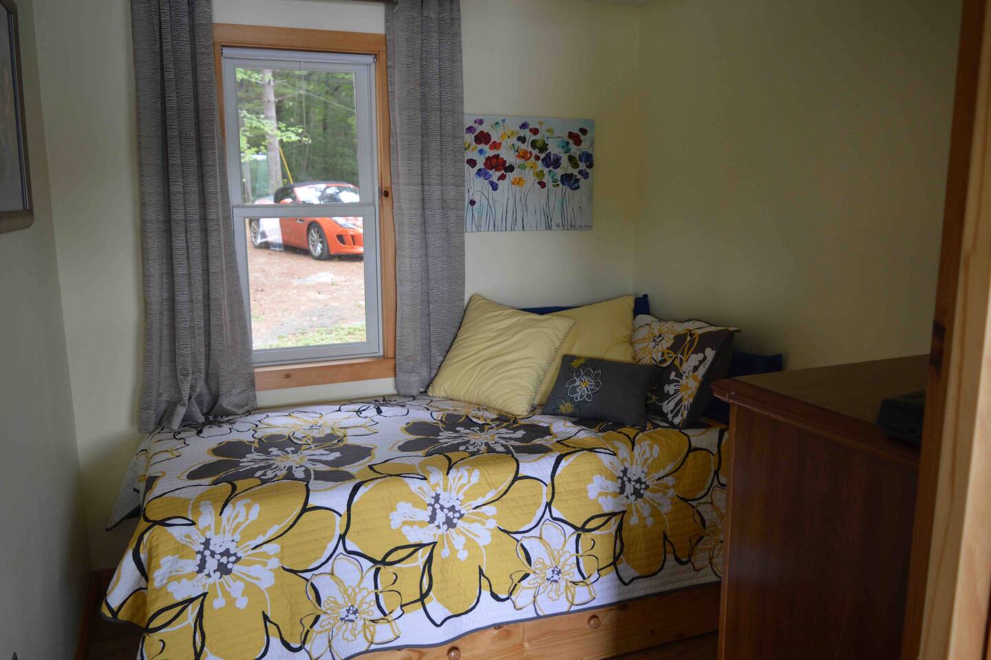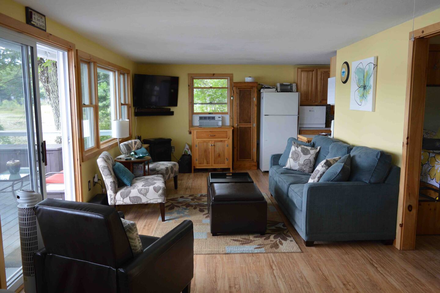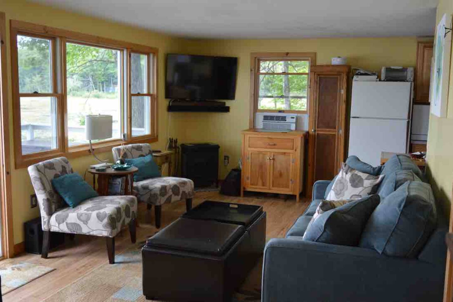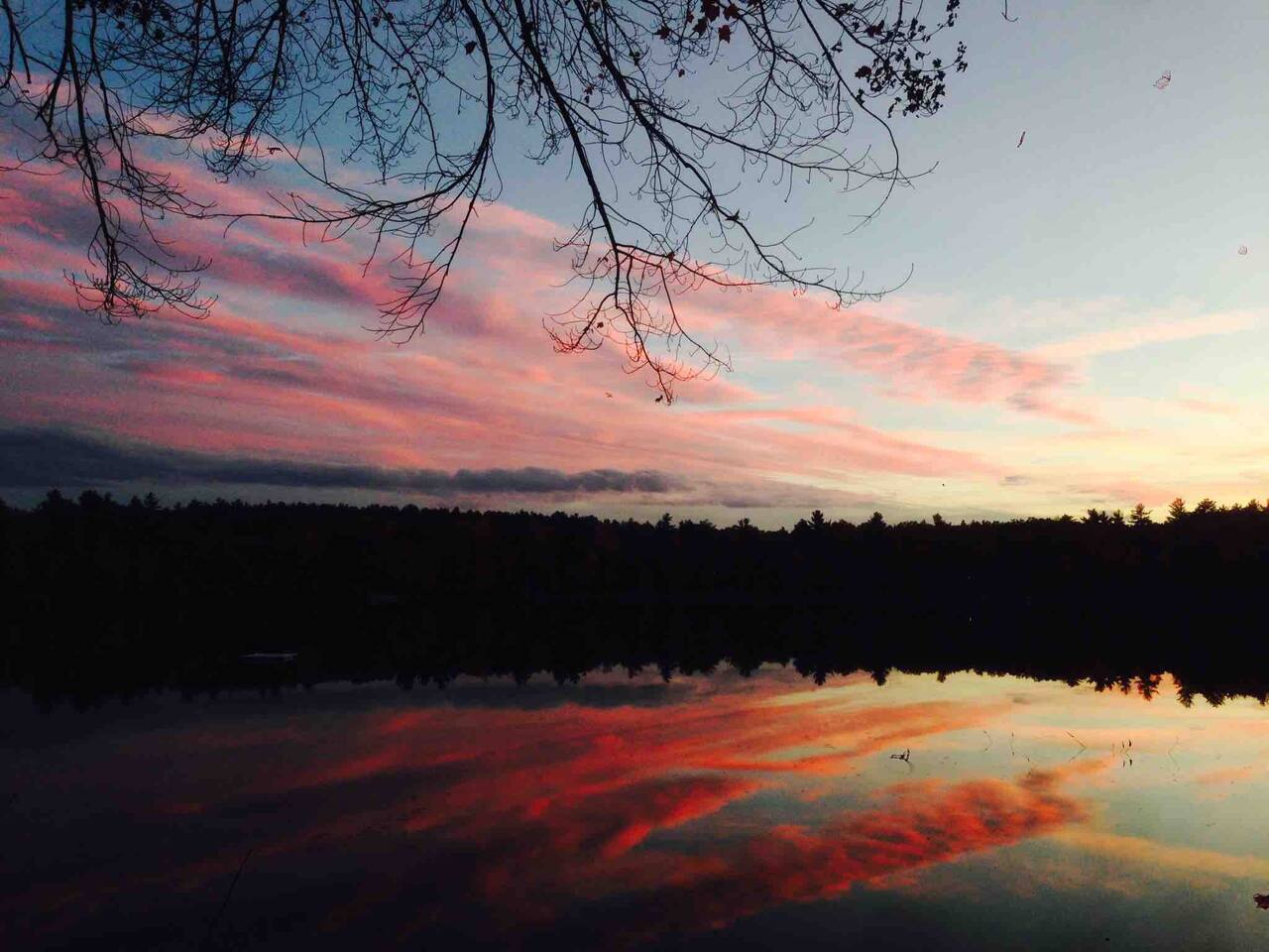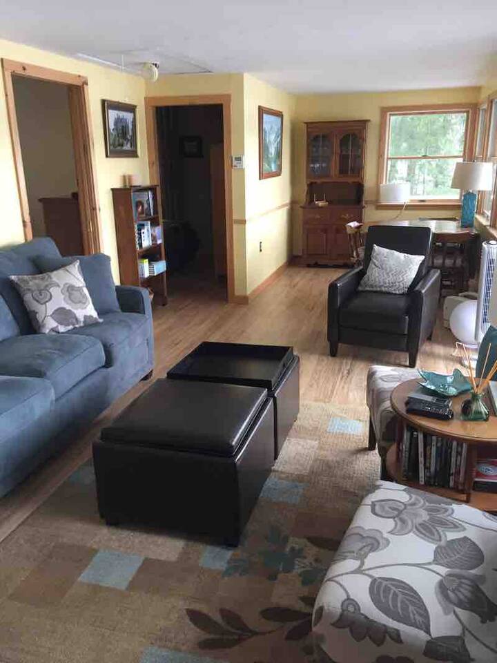 It’s all about the heavily wooded lakeside setting and the great outdoor space. Incredibly peaceful and restful, almost zen-like. The cottage and rooms are compact but comfortable. Please remember this is a rural woodsy lakeside retreat not a W Hotel!! The main house sleeps up to 6 and has one bathroom. Please note there is no laundry facility so please bring sheets and towels. Overflow beds are in a rustic bunkhouse sleeping 4 people in basic bunk beds. Has light, power outlet, windows, a fan and a space heater should you need them but no AC (it rarely gets real hot and often there is a Nice breeze from across the lake). Perfect for the kids! The lake is small but very pretty. Water is relatively shallow and warm. Lake floor is a mixture of sand and silt. We swim all the time in the sandy area in front of the small private beach. For those who like to fish I’m told it’s amazing because of the warm shallow water. You’ll see neighbors out fishing every day. No power boats are allowed.