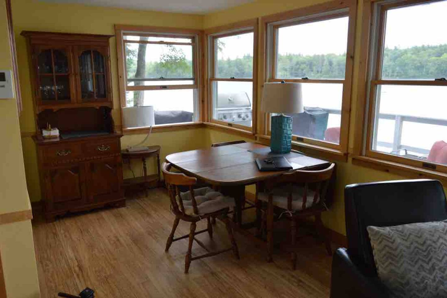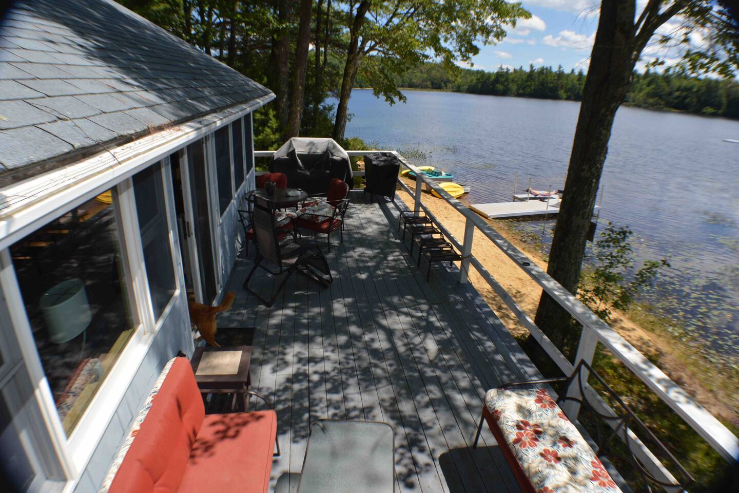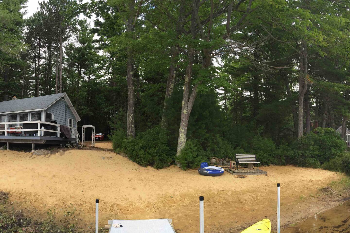 We do not have any laundry facilities so please bring your own towels and sheets (one queen sofa bed, one full size bed, 2 single beds in the house, 4 bunk beds in the bunk house). There are plenty of pillows and blankets. You will find extra blankets inside the ottomans in the living room. Please make sure to cover the outdoor furniture with the covers provided both overnight and when leaving the house for any extended period as weather conditions can change suddenly and the last thing you want is a bunch of soggy wet cushions! Place the swing chair cushion under the sofa cover. Leave the dining table cushions in place and simply cover the table and chairs with the cover provided. Make sure to put the way down bags on top of each cover otherwise the wind across the lake can blow the covers off! You’re welcome to use the various kayaks and boats in the beach area at your own risk.
