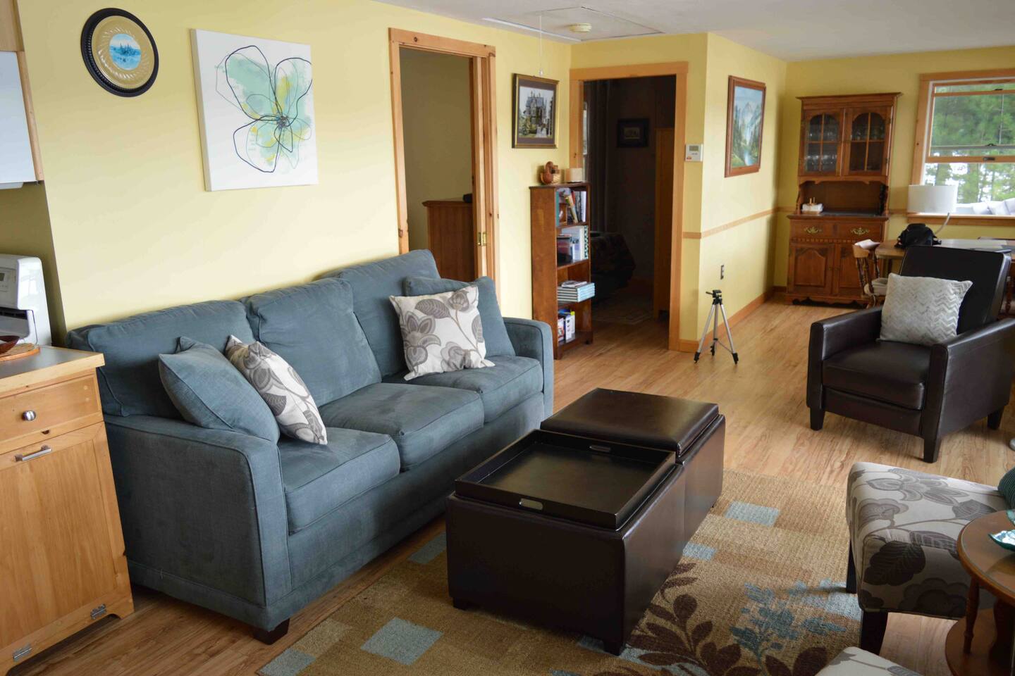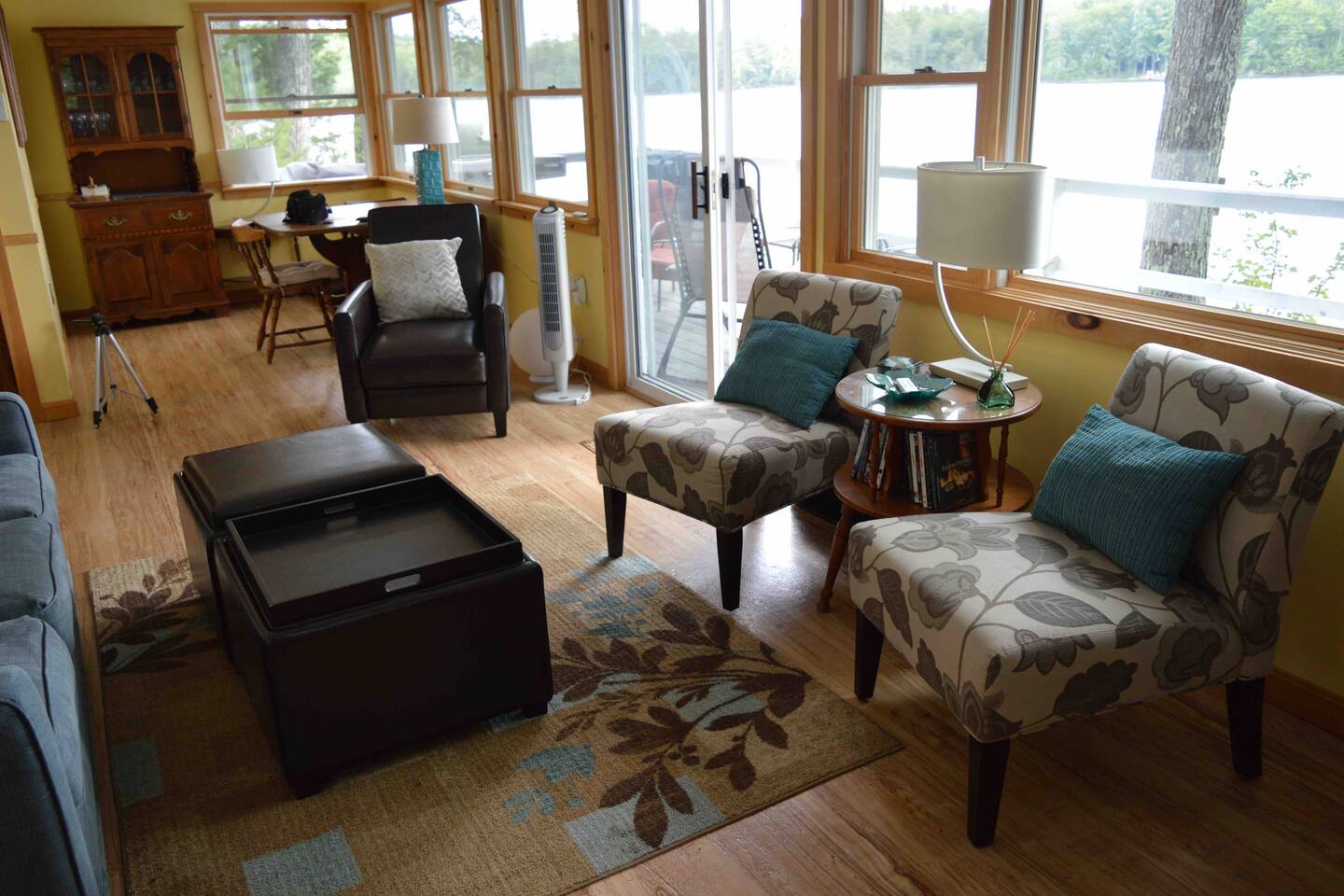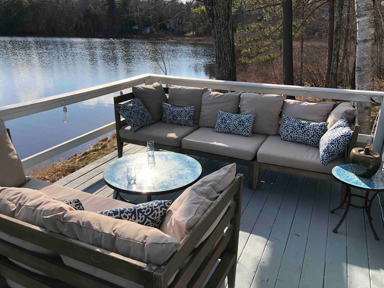 We do not have any laundry facilities so please bring your own towels and sheets (one queen sofa bed, one full size bed, 2 single beds in the house, 4 bunk beds in the bunk house). There are plenty of pillows and blankets. You will find extra blankets inside the ottomans in the living room. Please make sure to cover the outdoor furniture with the covers provided both overnight and when leaving the house for any extended period as weather conditions can change suddenly and the last thing you want is a bunch of soggy wet cushions! Place the swing chair cushion under the sofa cover. Leave the dining table cushions in place and simply cover the table and chairs with the cover provided. Make sure to put the way down bags on top of each cover otherwise the wind across the lake can blow the covers off! You’re welcome to use the various kayaks and boats in the beach area at your own risk.