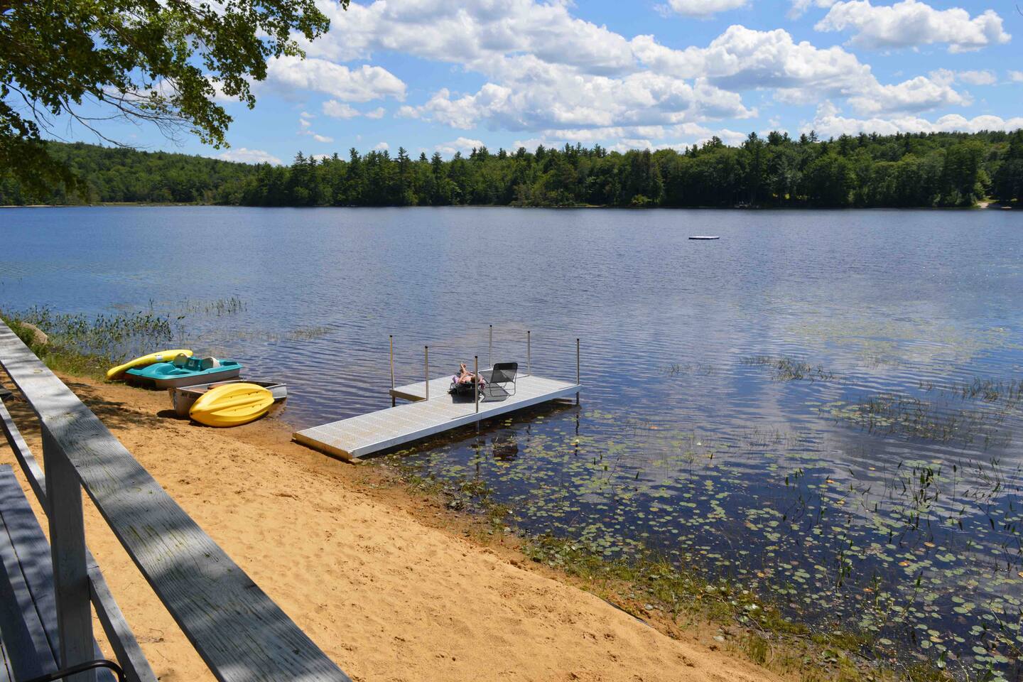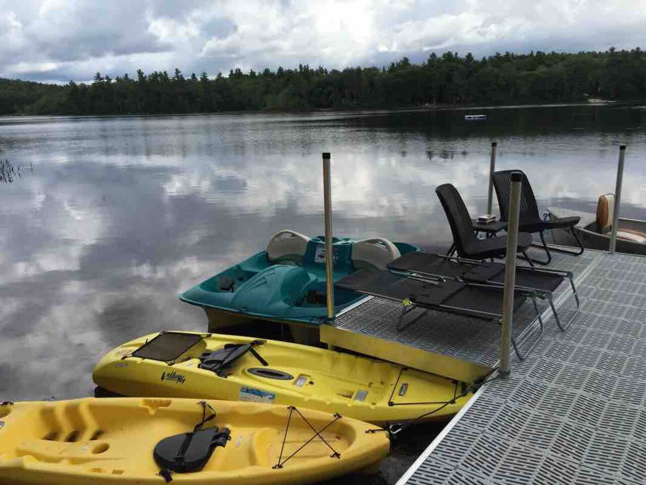 Take a break and unwind at this peaceful oasis perched on the edge of a small lake. Enjoy kayaks, row boat, peddle boat, swimming and fishing. Sit back and relax on the large deck overlooking the water and rustle up a BBQ dinner. Chill by firelight around our natural fire pit. Please see important notes about what to bring in the other sections of the listing.