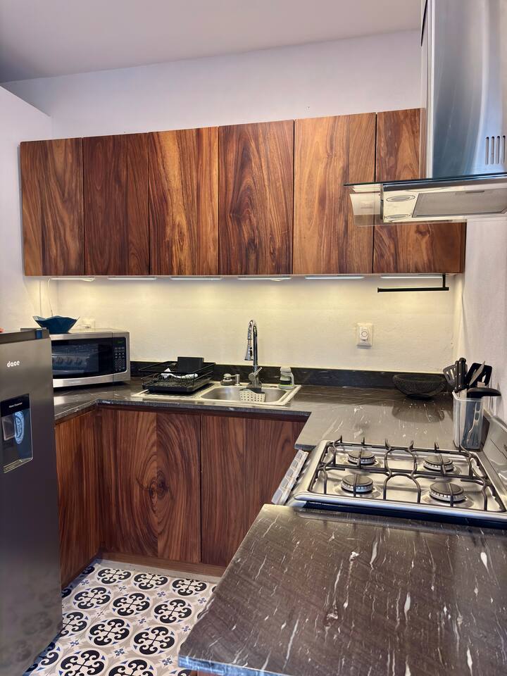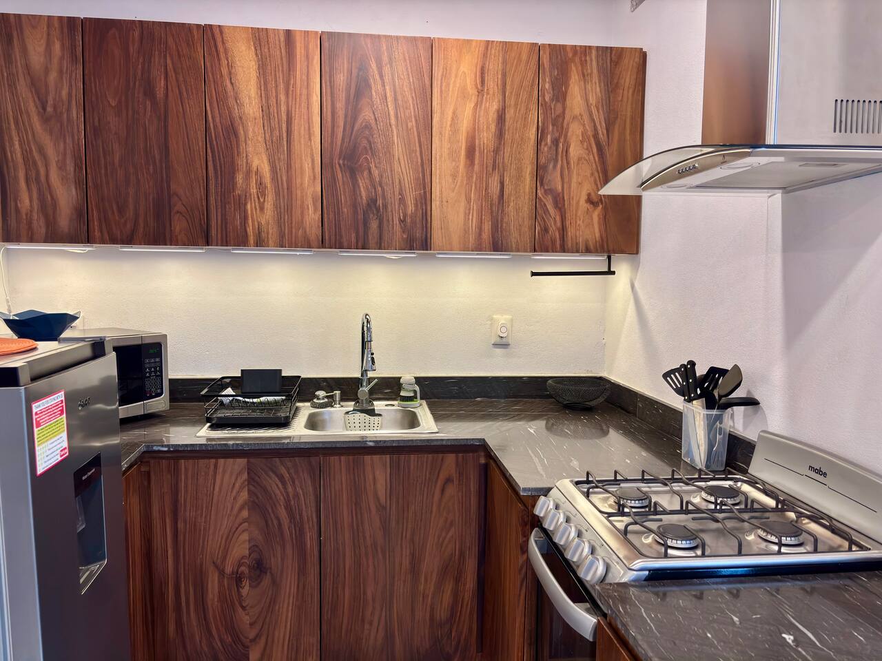 Charming and Spacious Studio in the Heart of the Romantic Zone - Studio B1 Please note the entire building has gone through a top to bottom renovation, completed in January 2025. Literally, everything is brand new! Discover the perfect getaway for friends or family in this spacious studio, ideally situated just a 11-minute walk from the stunning Playa Olas Altas and minutes away from dozens of great restaurants, bars and art galleries. Designed for your comfort and convenience, this affordable retreat offers a blend of relaxation and accessibility. Upon entering, you’ll be welcomed by a brand new and fully equipped hardwood kitchen. The space can accommodate up to four and includes a brand new full bathroom, a queen-size double bed in the sleeping area and a sofa bed that sleeps 1 to 2 in the living area. Everything is brand new as the place was completely renovated recently. Step through another door to find a large secure patio, shared with the adjacent 2-person studio. The patio has a nice view across old town and includes a comfortable sitting area and dining table. It’s a great spot to unwind with a book, enjoy your morning coffee or take in the nightly fireworks. Think of it as your outdoor living and dining room where you can embrace the tradition of indoor-outdoor living which is so typical in PV's near perfect in-season climate. Whether you're traveling with friends or family, this apartment effortlessly accommodates your needs without breaking the bank. Located in the vibrant Romantic Zone, you'll have easy access to local attractions, dozens of great dining and bar options, and beautiful beaches just a short walk away. Please note: For groups up to 6 people or those wanting separate private bedrooms, or exclusive use of the large patio, you can rent Studios B1 and B2 together under our separate listing for “Unit B”.
